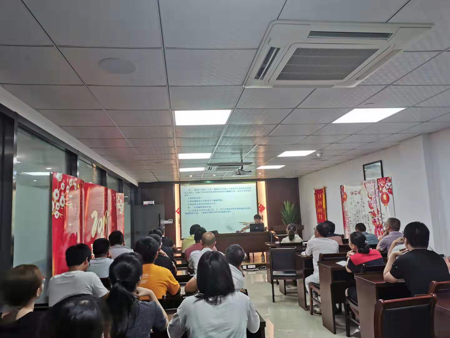 7月13日下午3点,公司在会议室组织了2019年第二季度职工内部培训讲座。本次讲座由温岭泽国至玉环大麦屿疏港公路工程(228国道)温岭段第三标段项目部张伟主讲,主题是“隧道施工”。