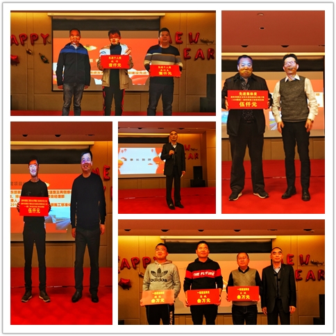 下午5时许,大会在主持人的新春祝福中正式拉开了序幕。大会首先由董事长林金才致欢迎辞。林董先对出席的各位领导、全体员工表示了热烈的欢迎和衷心的感谢,同时充分肯定和赞扬了全体员工在过去一年中作出的努力和贡献。付出总会有收获,紧接着公司对在228国道温岭泽国至玉环大麦屿疏港公路温岭段项目建设中涌现的先进个人和先进集体、一级建造师奖获奖者以及优秀工程奖获奖集体进行了表彰和颁奖。