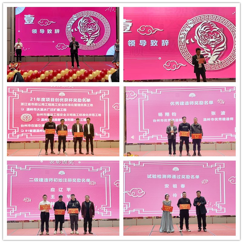 金牛俯首辞旧岁,瑞虎腾跃迎新春!告别难忘的2021,迈向全新的2022。2022年1月8日,浙江众一建设工程有限公司2021年度企业年会暨表彰大会在温岭市耀达国际大酒店紫金厅圆满举行,公司全体员工和公司领导欢聚一堂。同时大会荣幸邀请到了温岭市交通运输局潘华荣局长、应文明指挥与会指导。
